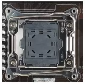 1. El enchufe que más llama la atención por su tamaño. Donde va enchufado el procesador. Este tipo de enchufe se llama SOCKET, https://es.wikipedia.org/wiki/Zócalo_de_CPU. Encima del procesador se pone el disipador, aunque este no se enchufa 😅, el que se enchufa es el ventilador que da aire.
