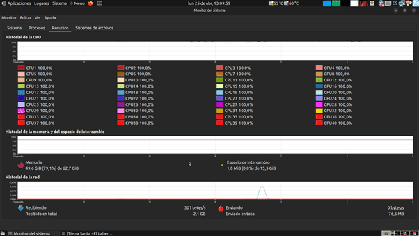 Llevo unas horas de uso y no noto nada, excepto que ahora (o de momento) no se me cuelga el sistema (no suele pasar, según mis notas 5 veces en el último año a causa de la gráfica. Ayer la última, algo pasa…); ahora lo tengo con poca carga de programas abiertos: 2 navegadores, varias ventanas de administración de archivos, un editor de texto, 5 terminales, y el monitor del sistema indica 50 GB en uso.