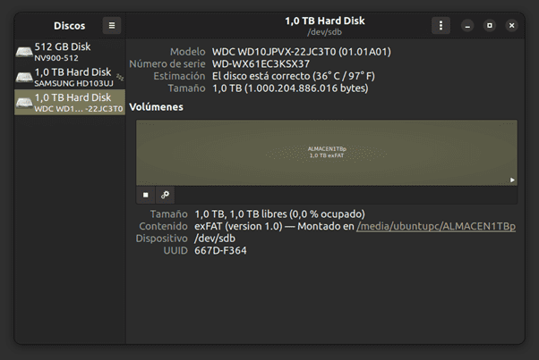 Al ser un disco usado, lo segundo, verificar la salud, esto es ver el smart y hacerle las pruebas de disco necesarias. Aunque lleve su tiempo. Lo lógico al ser usado es que esté algo tocado y hay que evaluar cuánto lo está, más que nada porque no se sabe si puede estar desde “muerto” a “nuevito”.