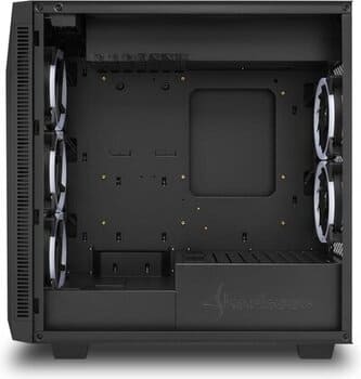 La Sharkoon REV200 puede montar gracias a este diseño, tres ventiladores RGB direccionables en la parte del panel frontal además de otros dos ventiladores en la parte posterior de la caja.