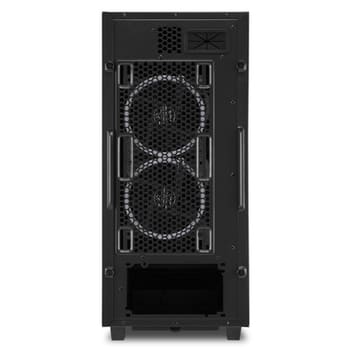 Si se prefiere refrigeración líquida, hay espacio para un radiador de 240 mm en la parte delantera y/o trasera de la carcasa. También es posible desmontando la carcasa del habitáculo inferior y una de las dos bahías HDD/SSD, dejar espacio para un radiador de 360 mm en la parte frontal de la caja.